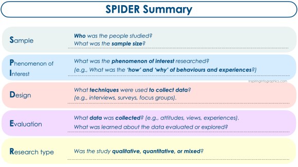he SPIDER summary: can be more helpful for qualitative research, and stands for: